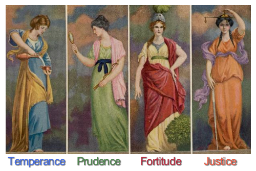 After the minchiate Key XV The Tower, there are the four theological virtues: Key XVI, Hope; Key XVII, Prudence; Key XVIII, Faith, and Key XIX, Charity. See below.