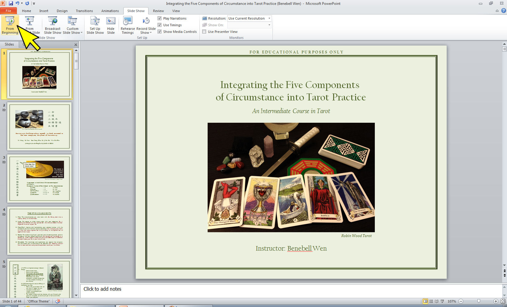 Note the big yellow cursor. That’s where your mouse should go. Click on “Slide Show.”