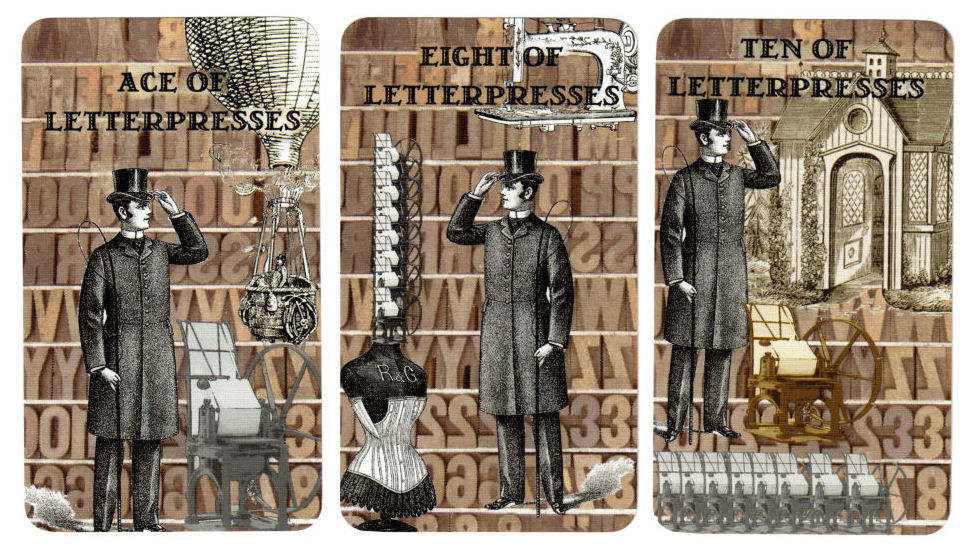 The final suit in the Minors, the Letterpresses, or publication, is about manifestation of creativity in the material world, and so it makes sense that they would correspond with the suit of Pentacles. Folks, the Poet Tarot is not a Rider-Waite clone. It is not a clone of any of the prevailing tarot systems with imagery cut and pasted to fit the traditional imagery of one of the existing decks, oh no. I truly believe the Poet Tarot is its own oracle divination system, and that became even clearer once I started reading with the deck.