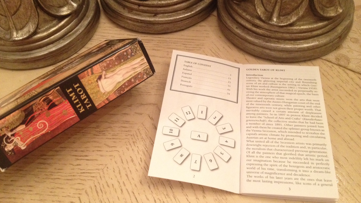 FTC Disclosure: In accordance with Title 16 of the U.S. Code of Federal Regulations Part 255, “Guides Concerning Use of Endorsements and Testimonials in Advertising,” I received Golden Tarot of Klimt from Llewellyn for prospective review. Everything I’ve said here is sincere and accurately reflects my opinion of the deck.