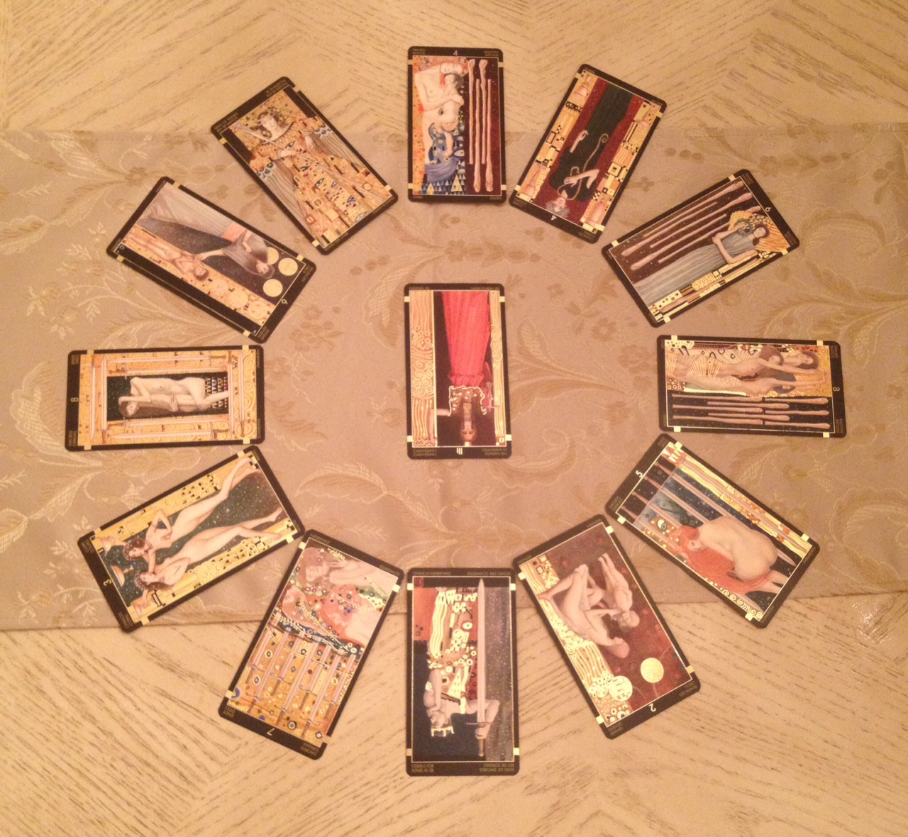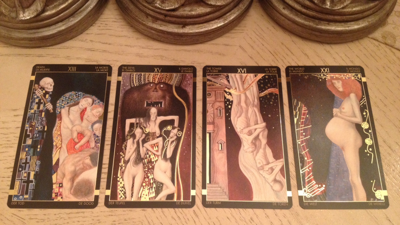 Once again you have selected one of my most favorite decks to review in depth, I also look forward to your blog, you offer so much insight and substance. This deck the ‘Golden Tarot of Klimt’ featuring impressionist’s work, and the recently published ” ‘ Tarot of Delphi’, “A fine art deck illustrated with authentic Victorian and Edwardian art from 1838-1913…” http://www.tarotofdelphi.com/gallery/, are two of my most beloved decks, right at the top!