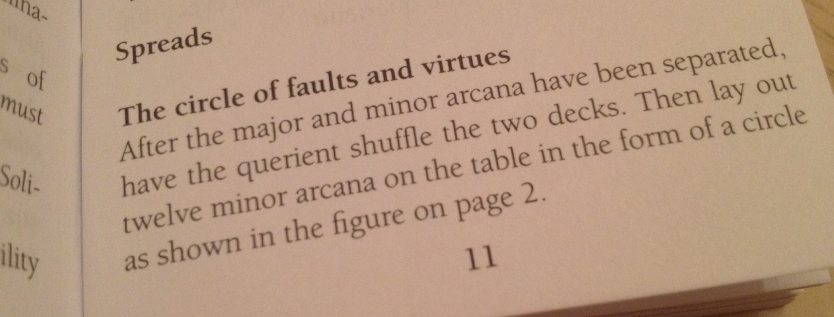 Now for the cool spread taught in the LWB. I haven’t come across this spread before, but I like it. It’s the “Circle of Faults and Virtues” spread.