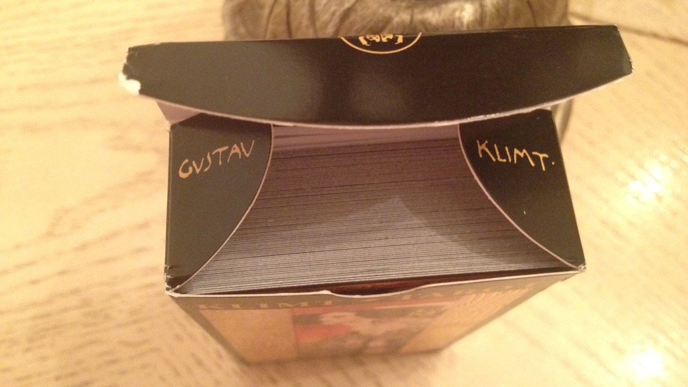 I was looking at this deck on Amazon today and am also a lover of this artist. Although I am not well versed in his paintings as you, I also had “the Kiss” hanging on my bedroom wall. It was after I had gotten divorced and had moved into a “lesser” apartment. I painted my bedroom stark white with white bedding and the stark blackness of the painting’s background was perfect. It was a time of renewal for me. Later I added a second print of a woman curled in a fetal like position. I had long red hair and I started taking middle-eastern dance and she reminded me of myself (including the lack of a flat belly). You probably know the painting name. I don’t but feel that buying the deck is destiny. Thank you so much for this review.