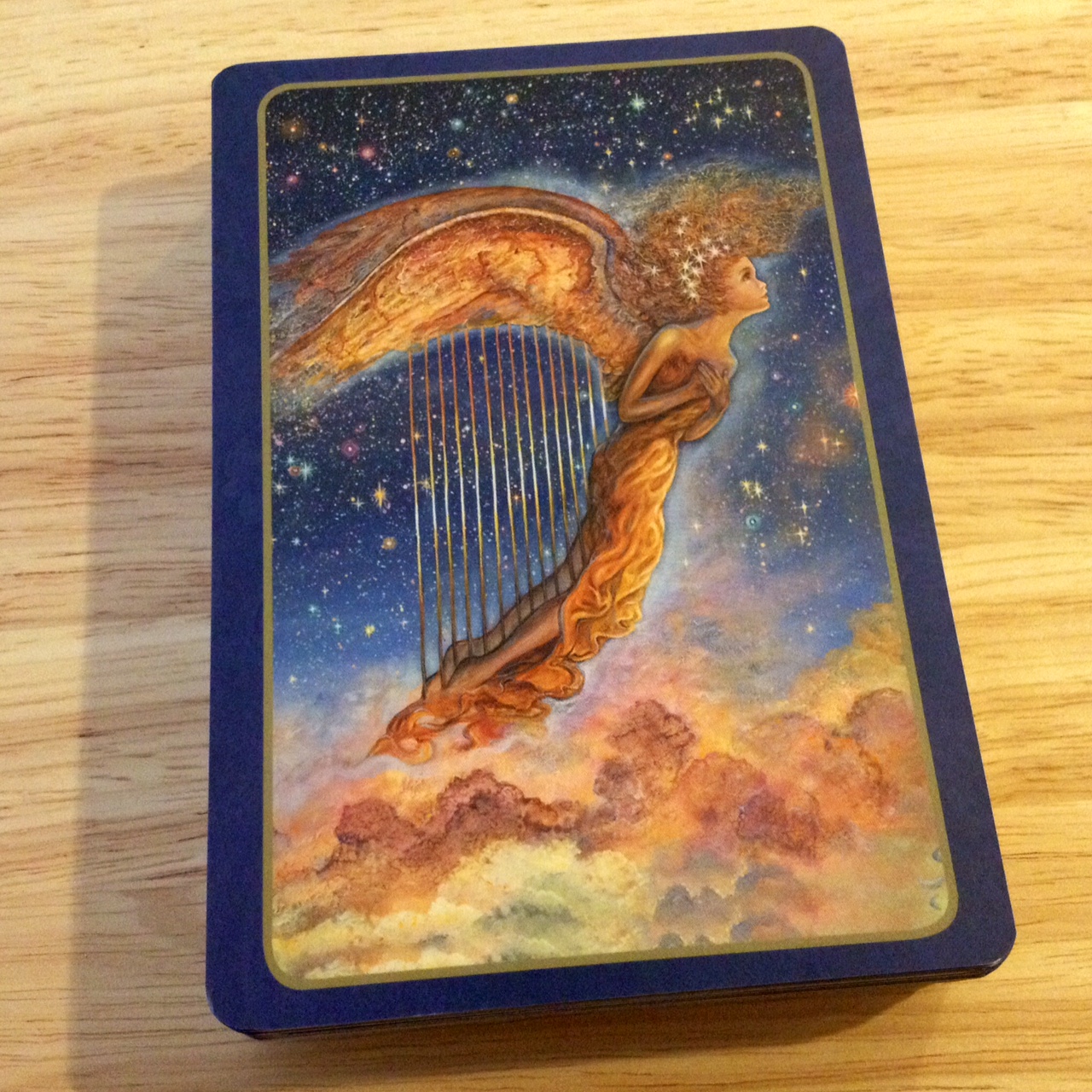 Whispers of Love is my first Blue Angel oracle deck that comes with a matte finish instead of the usual high gloss and I am loving it. I hope they stay with this finish and subsequent decks are printed in matte. The feel to the touch is fantastic; shuffling is fantastic; I love the swishy sound these matte finished cards make compared to the tacky-sticky glossed ones; and they photograph beautifully, with no glare. Here is one high-quality deck and I am thrilled.