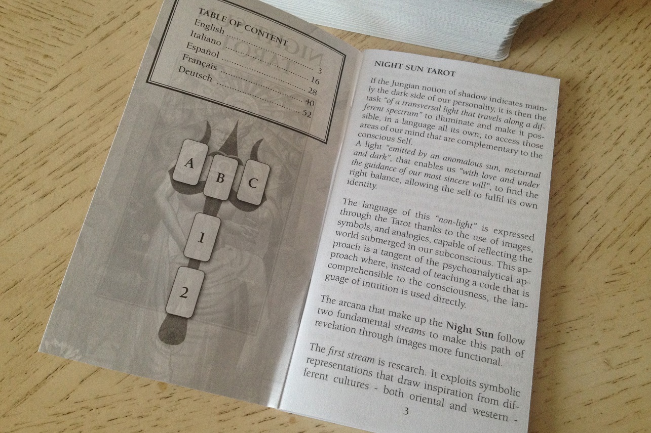 The little white booklet (LWB) is pretty standard for Lo Scarabeo decks, though it does offer a cool, original spread to work with.
