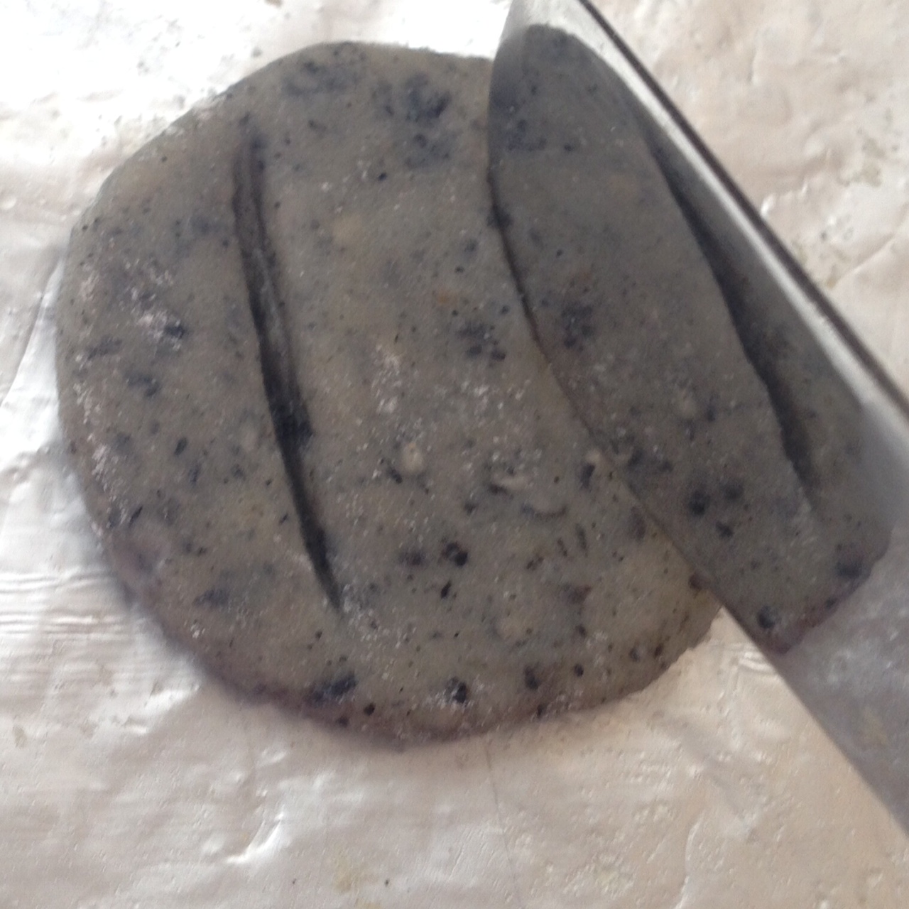 Then I sift in the all-purpose flour, salt, and baking powder in with the grounded black sesame flour. This is the “dry” mix. Combine the dry and wet mix together to form a dough.