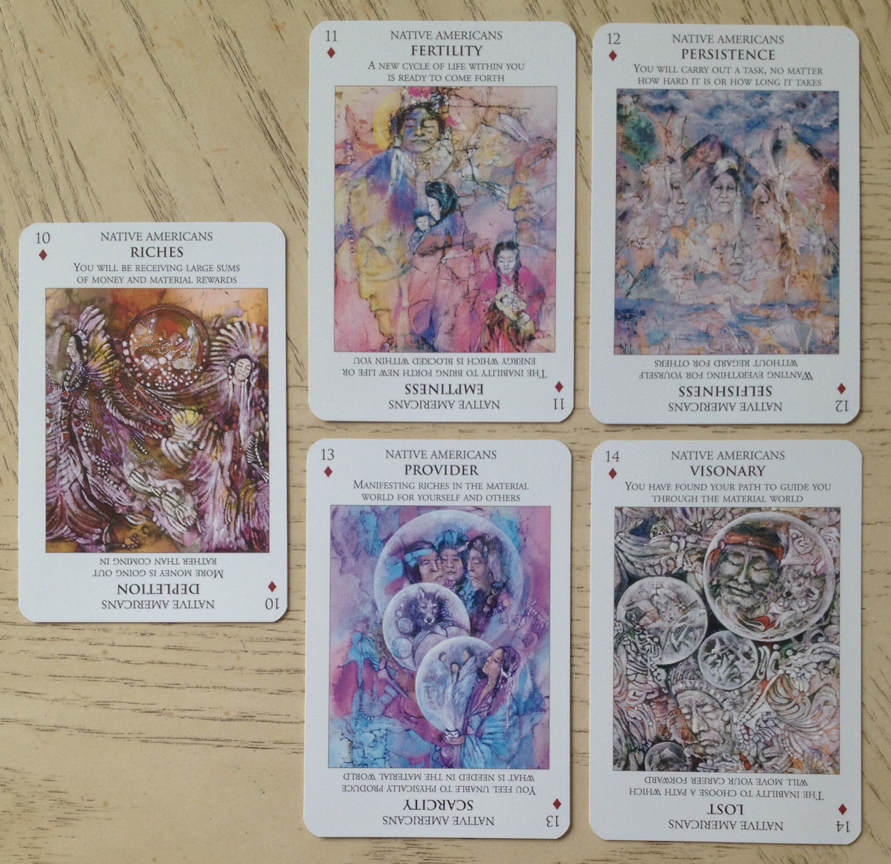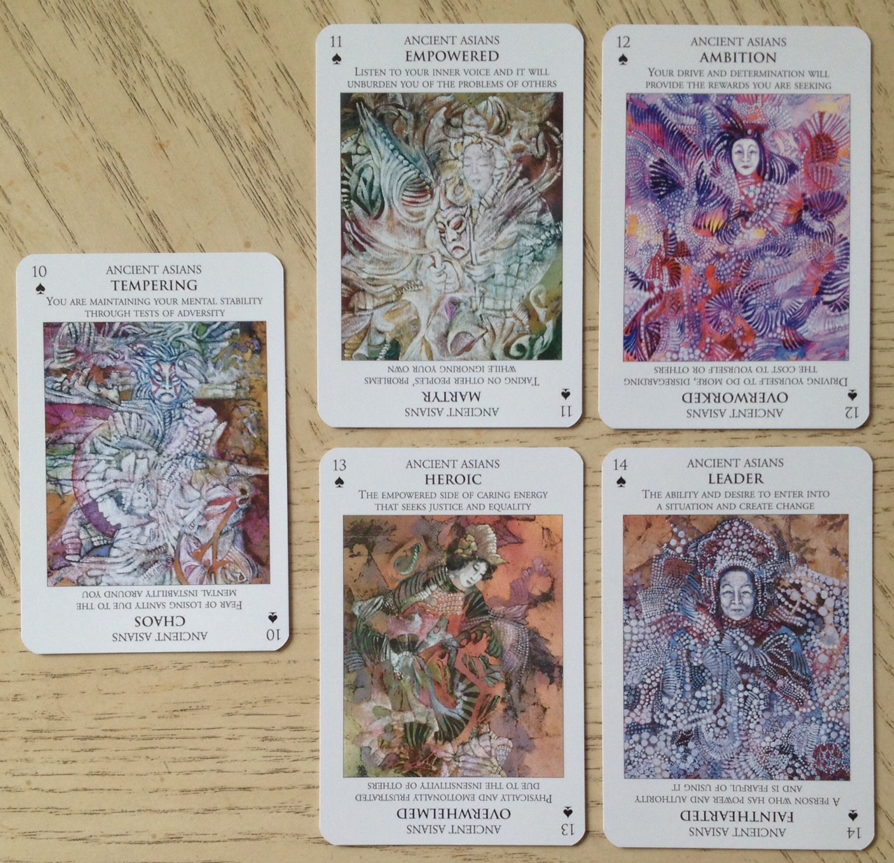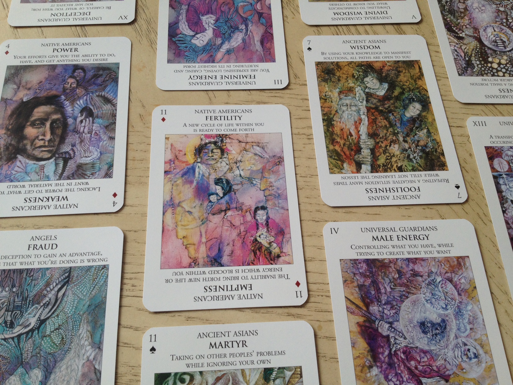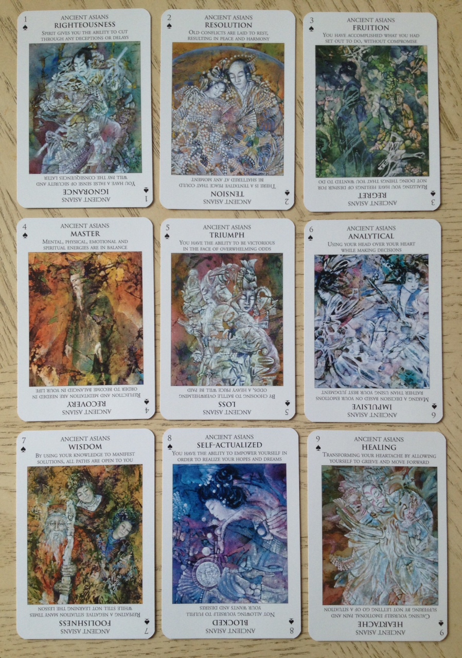 I also scratched my head on the “Ancient Asians” and “Native Americans” as “suits.” It was a bit…just an odd choice, I will say. But I still love the deck overall and the artwork is just beautiful. Great messages, too!
