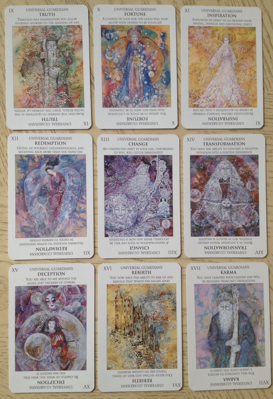 The Guardians of Wisdom Universal Power Cards is a 78-card tarot-inspired oracle and insights deck, or universal power cards, that was self-published back in 2000 by Todd Hershey and illustrated by Emy Ledbetter. I contend that this deck came out way ahead of its time, and had it been released today, 15 years later, rather than back in 2000, it would have become an instant bestseller and generated a great deal of buzz.