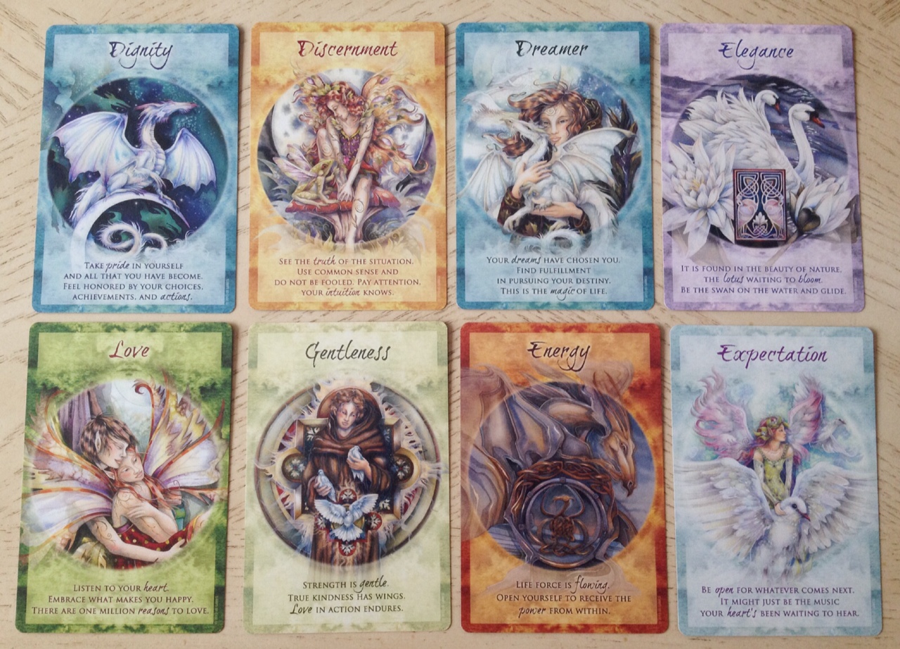 You’ll see above that the card Expectation is the image on the box. I’m always intrigued by why a particular card image is selected to be on a cover. The card Gentleness is one of my favorites. Is that Saint Francis de Sales? I especially love the swan imagery, like in the card Elegance.