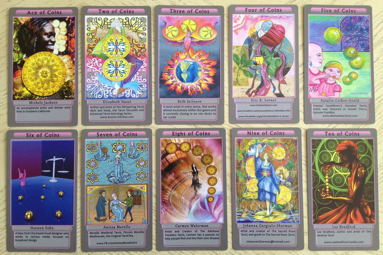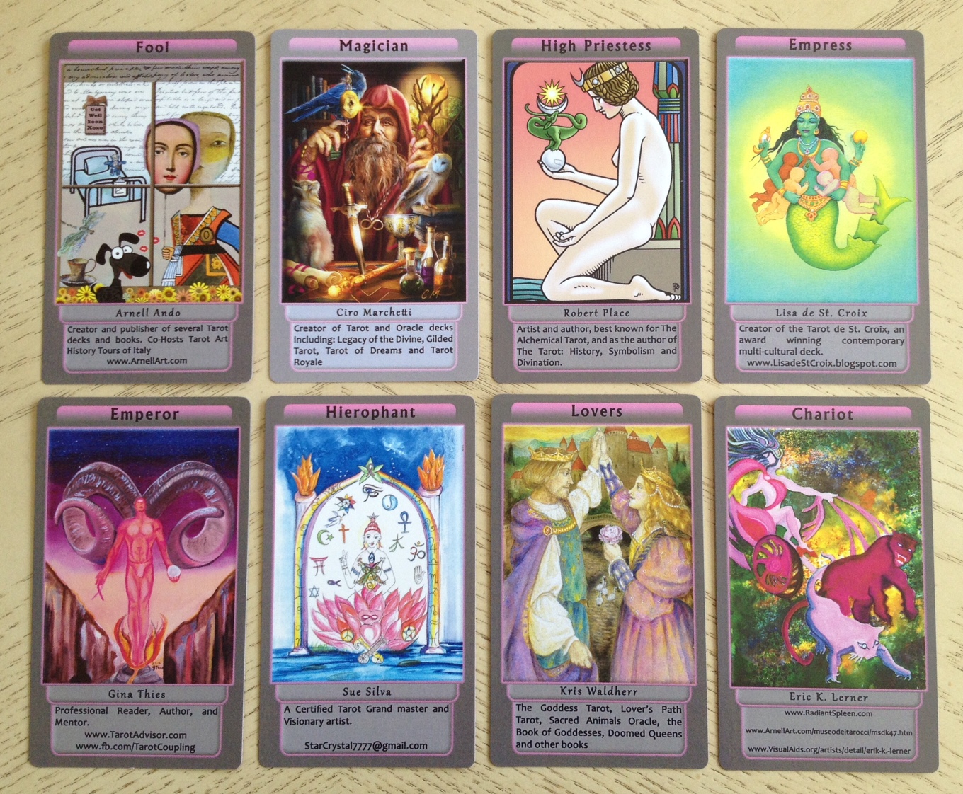 One thing to add from the perspective of a new reader (about 6 months): A collaborative deck is going to be a little more difficult to read with, anyway, just because the artwork won’t have a cohesive feel (even though it is stunning). Adding the large amount of artist information just increases that lack of cohesion. I would have liked to have all of the artist info – but maybe in the LWB instead of on the cards themselves?
