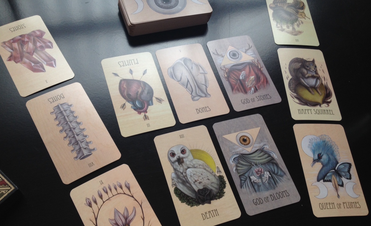 Imagine how ecstatic I was when my very first reading with the Wooden Tarot included a cameo from the Happy Squirrel card. My signifier, the Queen of Swords (here, the Queen of Plumes) also appeared in a reading where I wasn’t using a signifier/significator. For me, the Wooden Tarot took some extra work on my part to read. How a practitioner connects to a deck is very personal. A deck that just catapults my intuition to the next level might not work for you and vice versa. A lot of tarot folks have been buzzing about the Wooden Tarot and rave about how well they read with it, so it could do the same for you.