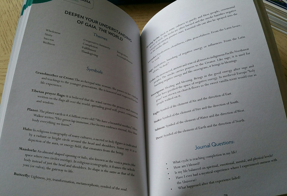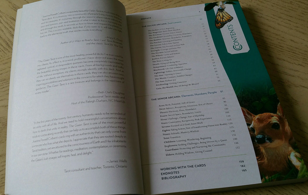The guidebook is a comprehensive text for self-study with the Gaian Tarot. (And if you find yourself enthusiastic about this deck, consider taking Colbert’s “Gaian Tarot for Beginners” course that will offered in September. Check it out on her website.)