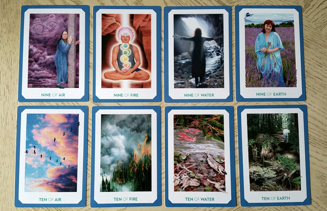 I love how all the nines show a solitary figure and all the tens are landscapes of nature, landscapes that embody the corresponding element. So much thought, creativity, ingenuity, and artistry went into this deck. The Gaian Tarot is the perfect deck for those who celebrate nature, the Gaia principle, or the Divine Feminine in their spiritual paths. There is a blending of paganism, Gaian spirituality, womanism, Eastern philosophy, and the celebration of nature and humanity’s relationship with Mother Earth.