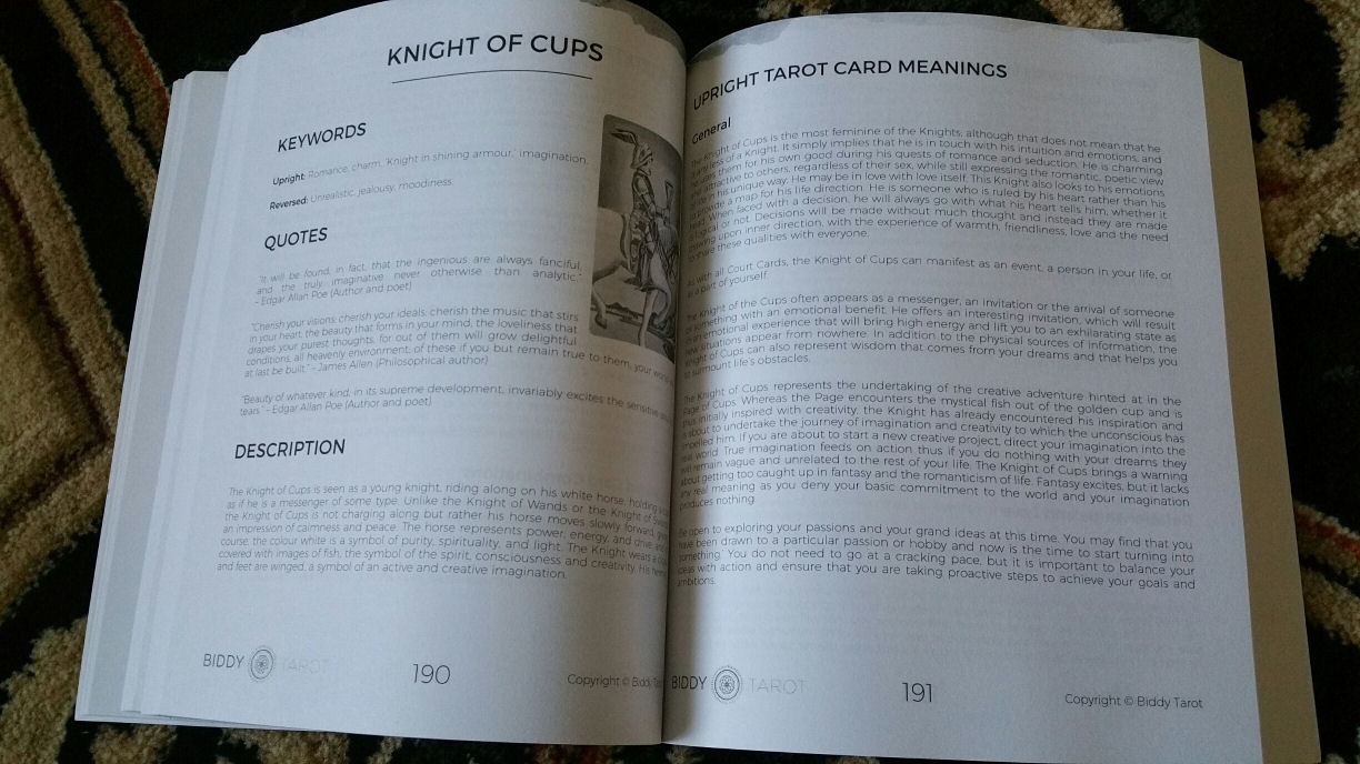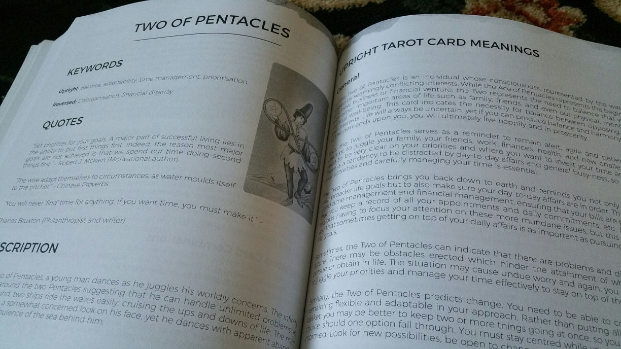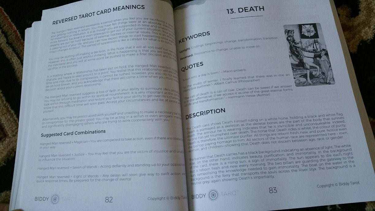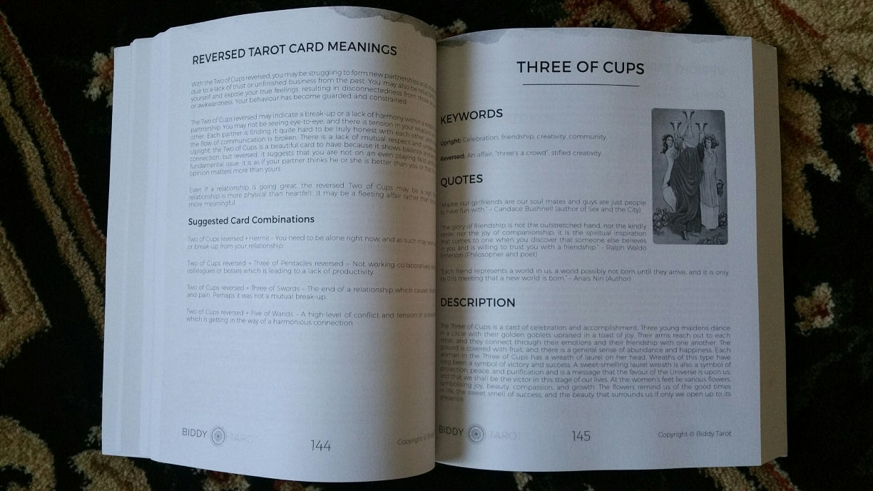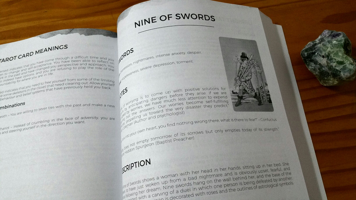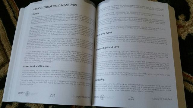 I love the quick reference charts in the book that you can tab and turn to quickly when you need to scan the book for immediate card meanings.