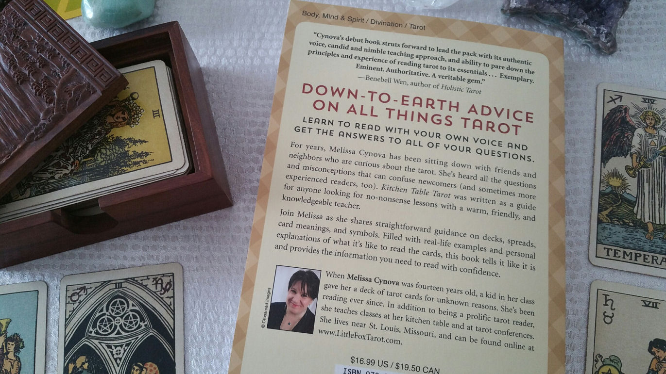 As some of you may know, I take in-person readings from vetted folks at my home and when they come in groups, I have a den that I’ve converted into a waiting room. Kitchen Table Tarot is in that waiting room for folks to read. They love it! Close by is a Rider-Waite-Smith tarot deck that they can thumb through alongside Melissa’s book.