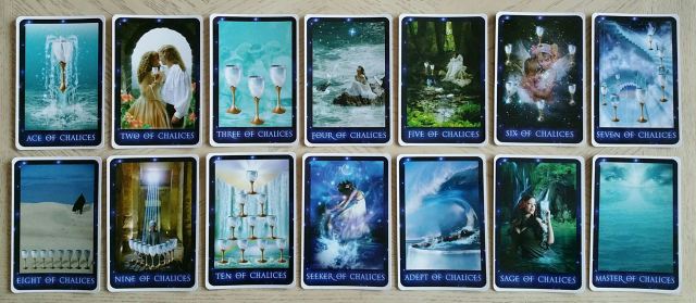 You’ll have noted earlier with Key 8 being Strength and Key 11 being Divine Justice that the Sirian Starseed follows a Rider-Waite-Smith based system. In the Minors, the four suits are the Flames, Chalices, Crystals, and Orbs. For the courts, you’ve got Seeker, Adept, Sage, and Master. I like the titles for the courts.