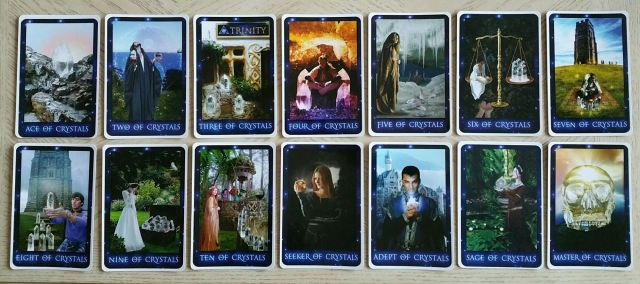 The suit of Crystals corresponds with the element Earth, or the suit of Pentacles. This confused me for a moment, since there’s also a suit of Orbs. However, in this deck, the suit of Orbs corresponds with Air, or Swords.