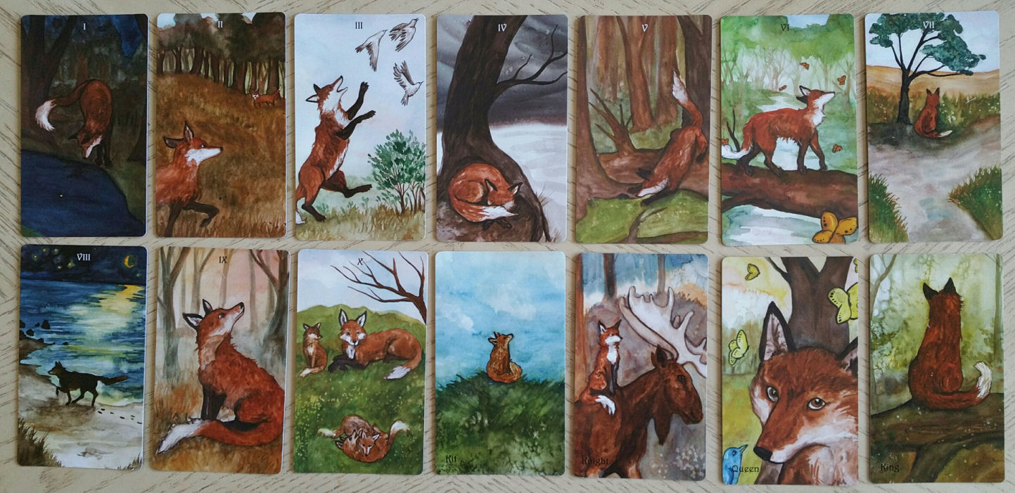 Foxes are the suit of Cups. I didn’t immediately make that connection myself, but love so much every card in this suit. I’m particularly drawn to foxes.