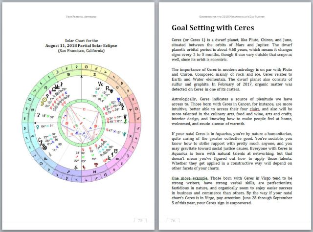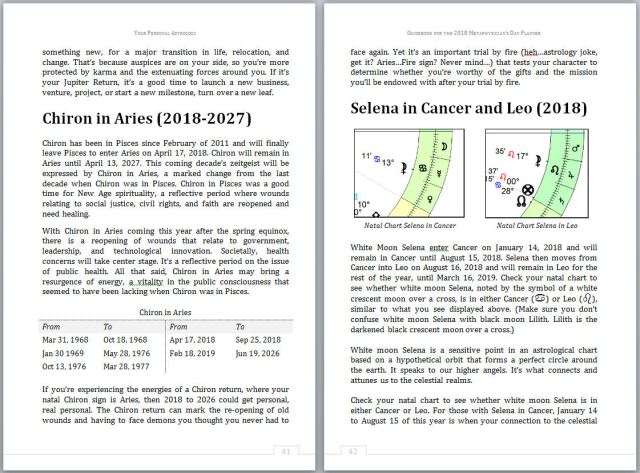 There’s both Western and Eastern astrology in here. I also include the astrological charts for every eclipse in 2018, loads of eclipse info, and how to read your own chart for key 2018 transits. I also teach you how to use the ephemeris tables in the day planner and work with those tables alongside your natal chart.