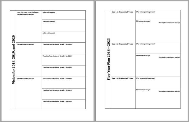 If you place an order, we’ll do 2 different size options for you for $35. Then you can send to the printers two different size options for your day planner, produce two or multiple copies of the planner, and use them in different ways throughout 2018.