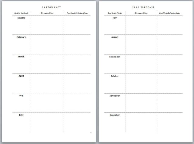 Then, still on annual planning, we get into the spiritual and there’s space for a twelve-month tarot or oracle card forecast for 2018.