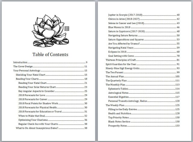 This year’s day planner is better. Okay, well, I think it’s better. Who knows what you think of it all. Ephemeris tables, charting sign transits for the Sacred Seven for each and every day of 2018, and also, this year’s day planner comes with a 200 page Guidebook. Yep, that’s right. The day planner has its own operation manual.
