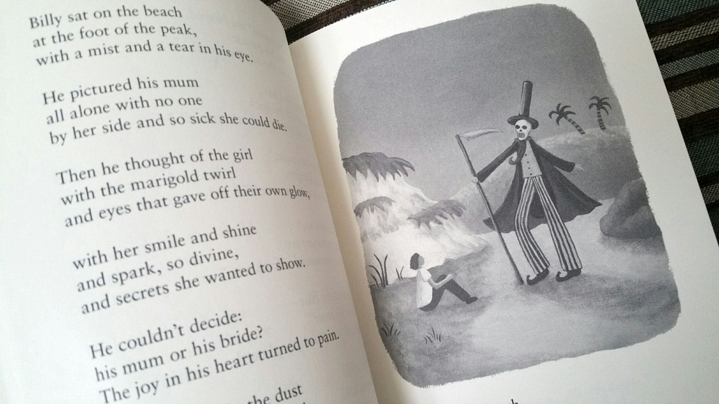 I see the Judgment card, what about you? The narrative of the poem follows Billy, a young boy who awakens with an aspiration, cannot fulfill it at home, and so journeys outdoors in search of what he’s looking for. Won’t give away what it is he’s looking for. It’s cute, though.
