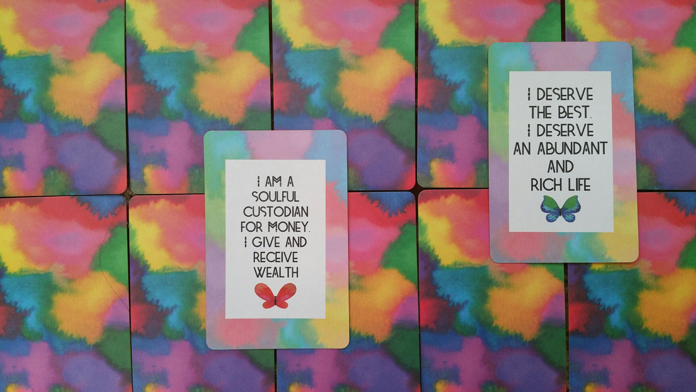 You get a total of 48 affirmation cards that really do seem to take on a life of their own, and so they really will be an empowering manifestation partner to help you achieve your financial goals. I admit in my personal practice I’m not big on pretty in pink affirmations and am kind of that glowering party pooper who thinks the heavy emphasis on saccharine sweet positive thinking can be a bit of a sham, but there is something endearing about this deck that wins me over.