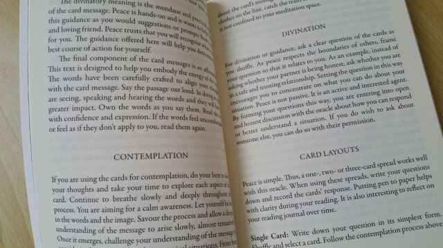 2. Thank you for this review — i probably wouldn’t have bought the Peace Oracle without seeing the depth of the guidebook and the relevance of these ideas to my life right now. However, reading that the cards were glossy made me even happier, as that’s my preference, Instagram notwithstanding (: