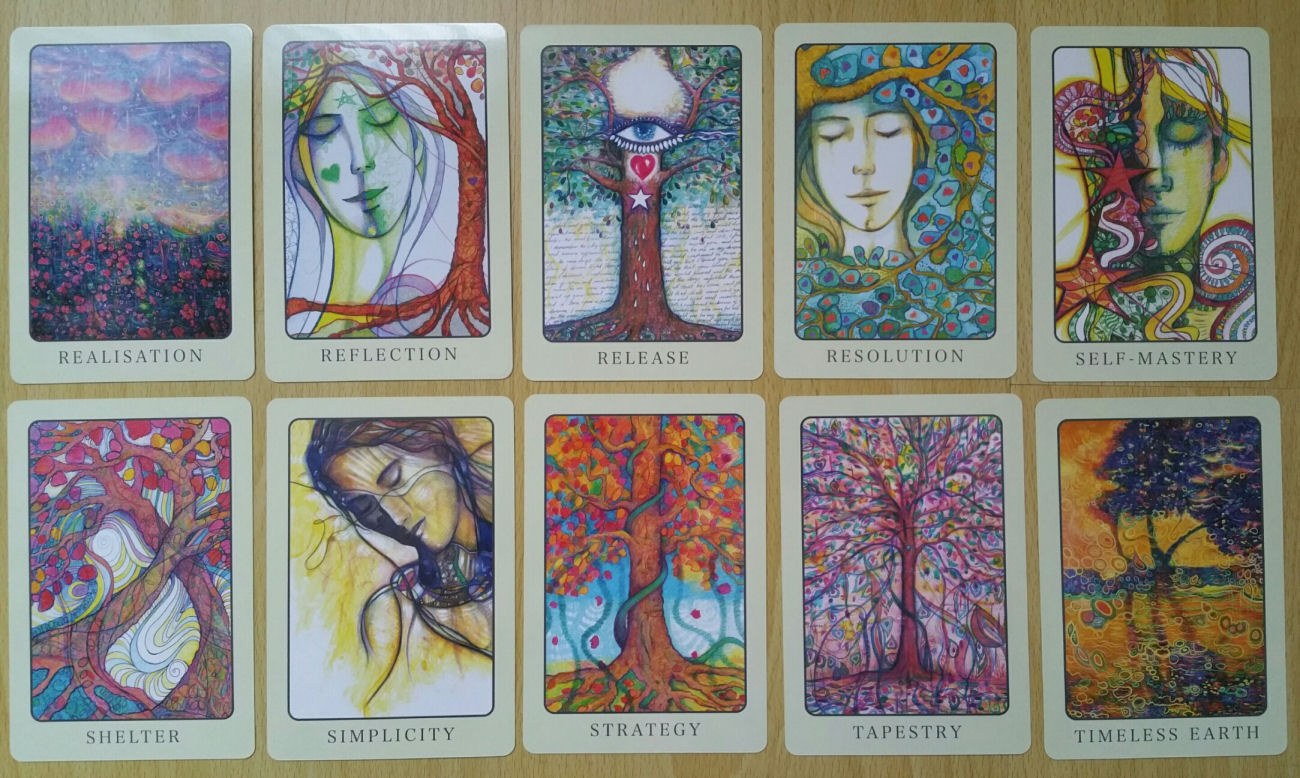 Try out an oracle card reading with the deck to see if it resonates with you. Start by defining a challenge you currently face, that you’d like some divinatory guidance on how to overcome. Then select one of the cards above: left, center, or right. The card drawn will reveal a critical key or factor you need to consider to help you overcome your challenge. Now let’s proceed with the deck review.