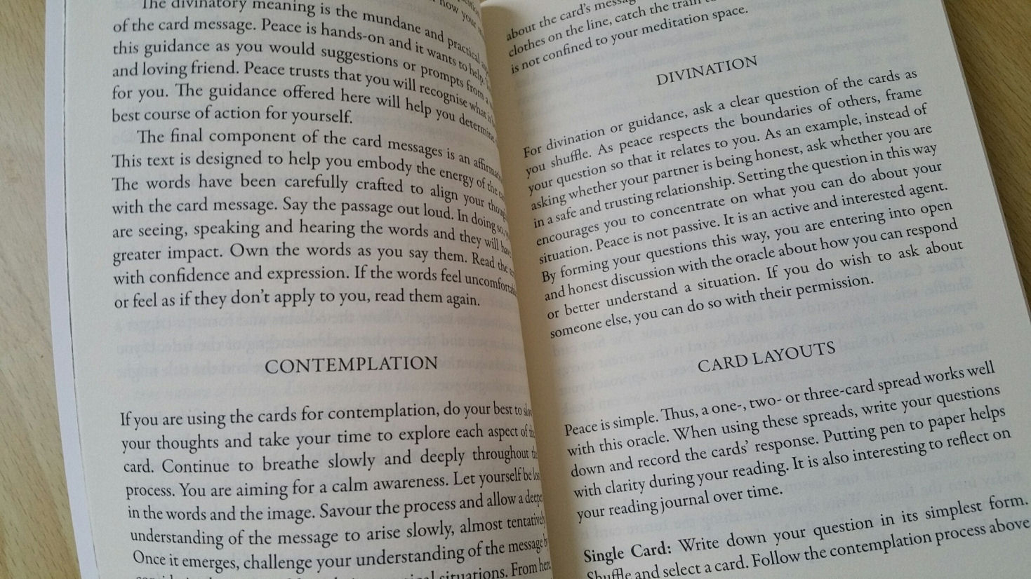 2. Thank you for this review — i probably wouldn’t have bought the Peace Oracle without seeing the depth of the guidebook and the relevance of these ideas to my life right now. However, reading that the cards were glossy made me even happier, as that’s my preference, Instagram notwithstanding (: