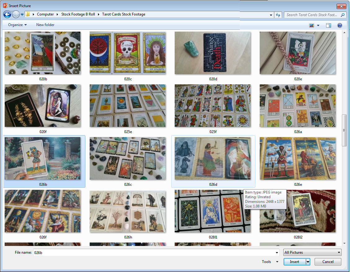 As an example, I’m inserting this photo I took of me holding the Page of Cups up to a painting. If your photograph is exactly the size of the Presentation slide, it’ll auto-fit. Otherwise, you may need to adjust manually.
