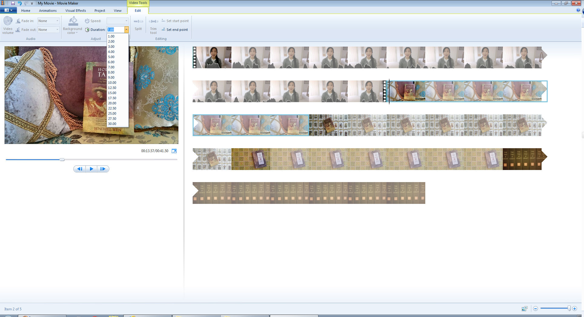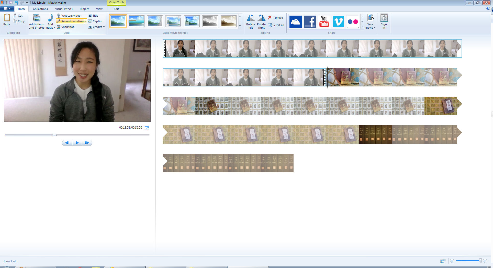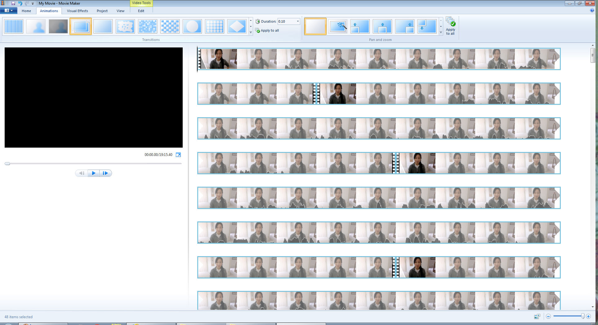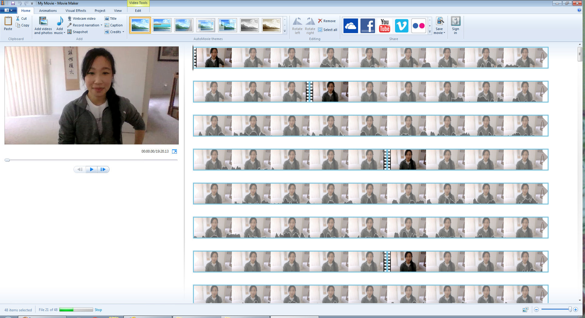 Now open MovieMaker and then drag and drop all the video clips you took in order. If you’ve got a bunch of video clips like I have, it may take a couple minutes to load, so be patient.