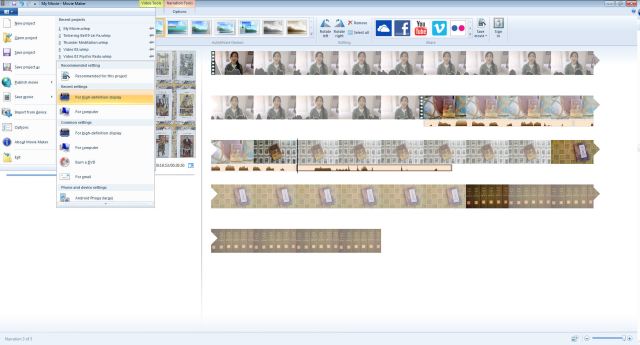 When you’re ready to produce the final video, click on that top left corner tab picture thingie (just look on the screen shot above; I dunno what it is). A menu appears. Click on “Save movie.” Another menu option appears. I click on “For high definition display.”