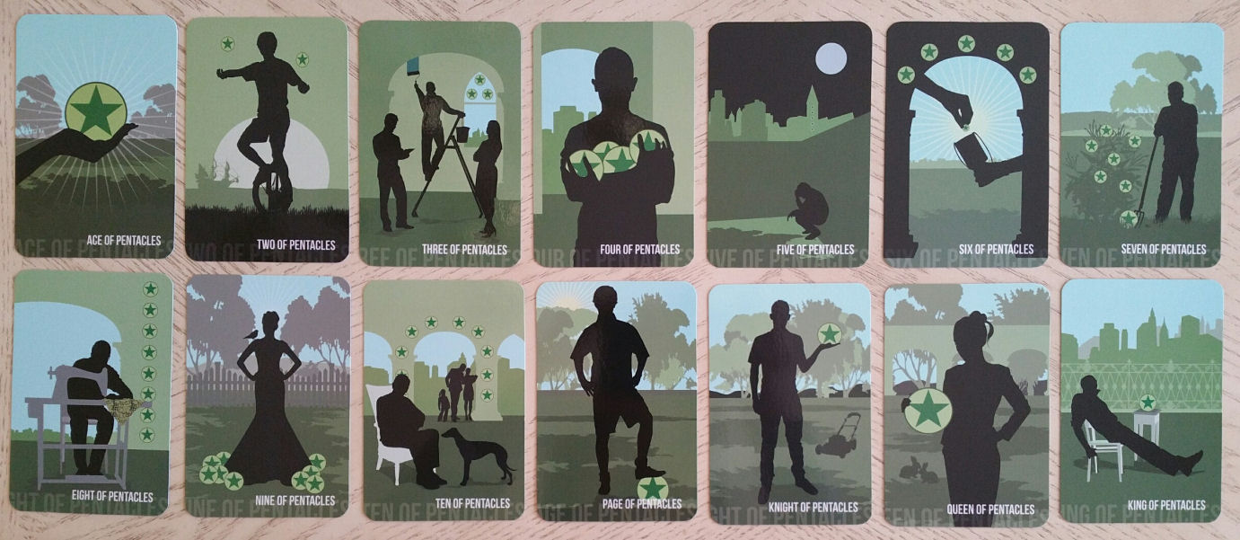 Ah. Verdant green for the suit of Pentacles. Really digging that Nine of Pentacles.