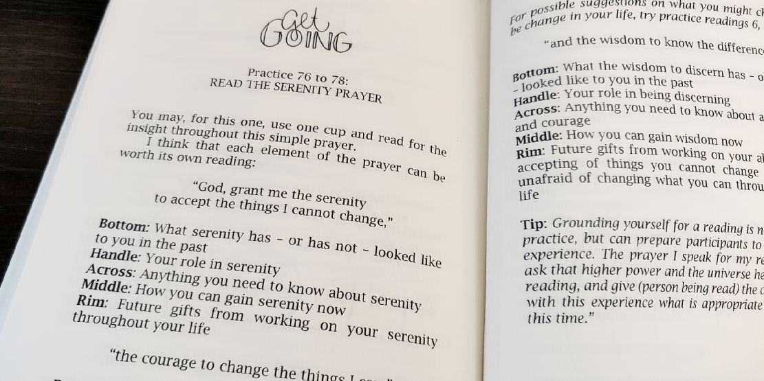 Dial’s book is different from some of the tea leaf reading books I vaguely recall reading in the 80s and 90s, where tea leaf reading was presented with an ambiance of mysticism and mystery. I think I also recall extensive glossaries of actual symbol listings and what they mean. There is no glossary of fixed symbolic associations in Creative Divination. Instead, it walks you through how you will design your own glossary of symbolic associations. Again, think of it like having to conceive of your own tarot or Lenormand deck that will forever be in your mind, and then projecting those symbols on to the tea leaf formations you see, to identify which of those symbols from your mental glossary show up in the cup and where in that cup those symbols are positioned.
