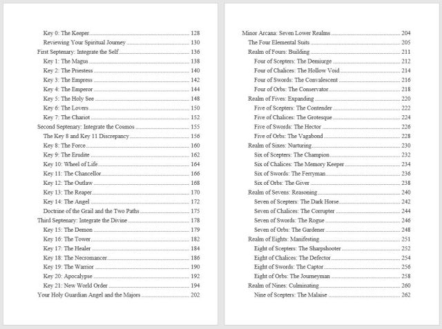 The Book of Maps: Vade Mecum is the in-depth reference manual to the Spirit Keeper’s Tarot deck. It is a grimoire with instructions on an optional self-initiation to gain a greater scope of access with the deck (where you’ll be coloring in card images in the book, not the cards themselves), some insights on divinatory readings, angel communications, the Hermetic influences in the deck’s symbology, and most significant: the detail by detail explanation for each illustration and a profile for the identity of each Key’s resident spirit and how to invoke or evoke that spirit.
