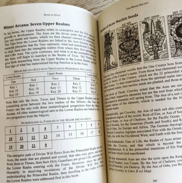Each tarot card in Spirit Keeper is a map of the corresponding dominion of an angelic being. Each physical card is the gateway to that world and the guidebook is a manual for helping you walk through that gateway. The maps are drawn under an esoteric system of cartography and so that’s what The Book of Maps is for: to explain that esoteric system of cartography.
