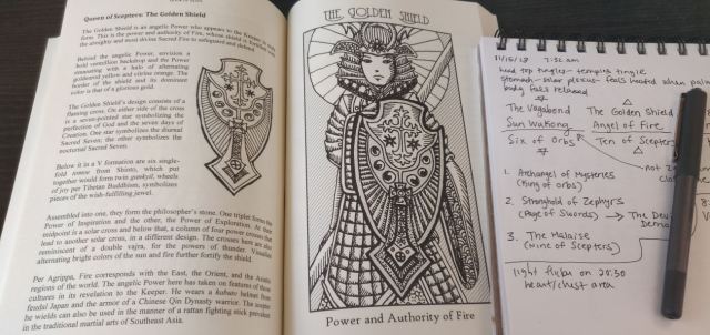 If you see The Golden Shield and your immediate download is ham sandwich, I would say roll with it and write down “ham sandwich.” You can process how that download happened and what to make of it later. (Fortunately, I didn’t get “ham sandwich.” I got “Angel of Fire,” which still felt rather obscure and unclear, but I didn’t care; I rolled with it.)