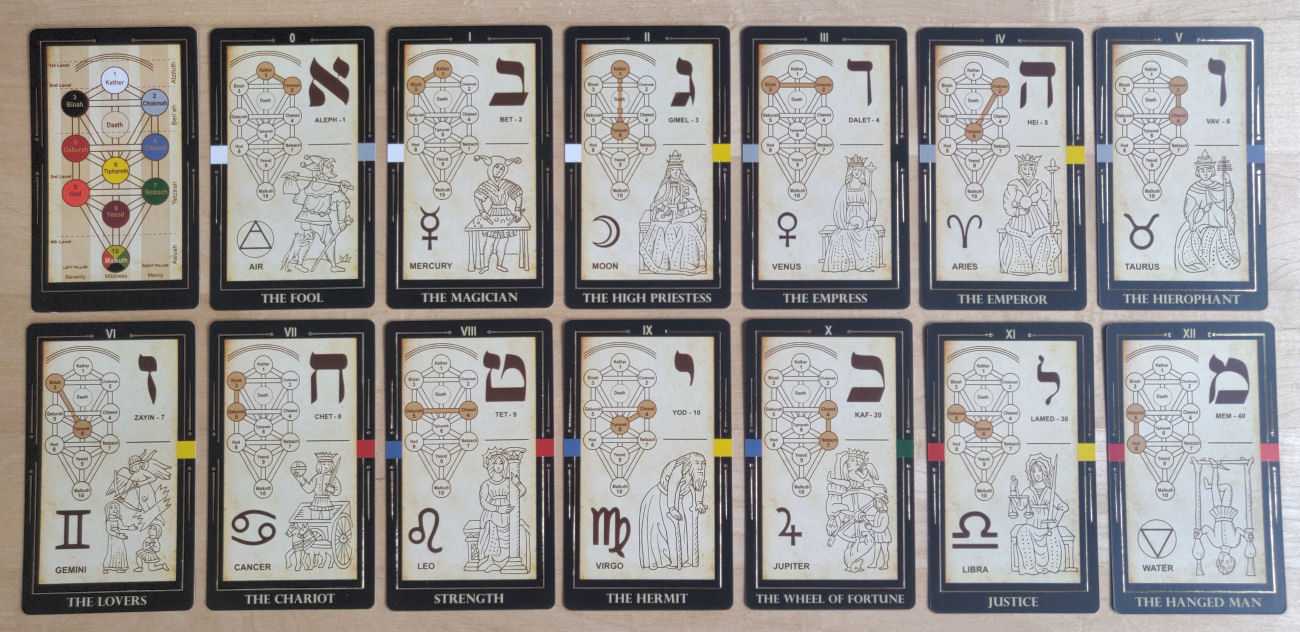 Celebrating the heritage of linking the Kabbalah to the tarot first prompted by Antoine Court de Gebelin in the 17th century and then later elaborated upon by Eliphas Levi, the Kabbalistic Tarot accentuates the correlations between the tarot and the Sephiroth Tree, where the Majors represent the dynamic part of the Tree, underscoring the paths of movement from one sephira to another, while the Minors are the rigidly bound static sephiroth.