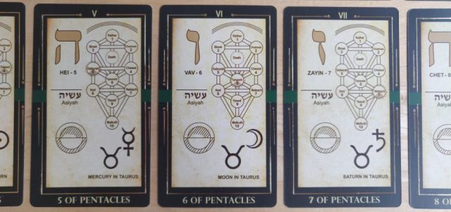 Kabbalistic Tarot works not only as a functional tarot deck for divination, but it’s also a meditation deck, as Vinitski notes in the product description. For me, it’s an exemplary study deck. These cards, a few good books on the tarot and Kabbalah, plus an enlarged sheet of that Tree of Life diagram, and I think anyone will be armed for mastering the GD correspondence system.