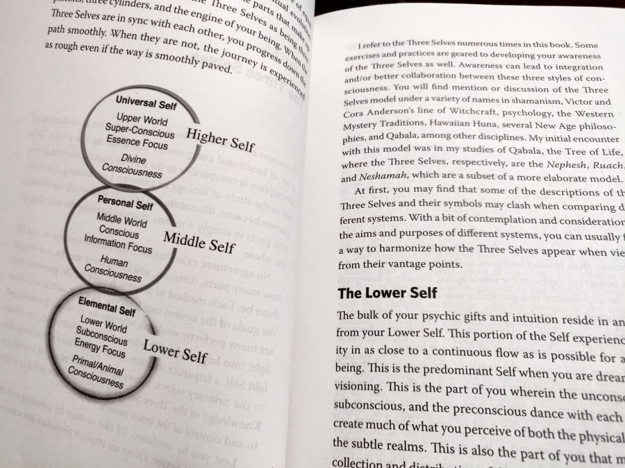 Dominguez explains how there are three modalities of the Self– the Lower Self (elemental self, subconscious, and primal consciousness), the Middle Self (conscious mind and information focus), and the Higher Self (your divine consciousness). Psychic ability resides in the Lower Self while the Middle Self is your waking consciousness, reasoning abilities, and the voice of your thoughts. The Higher Self, then, is your connection to the divine, and your Divine Inner Spark.