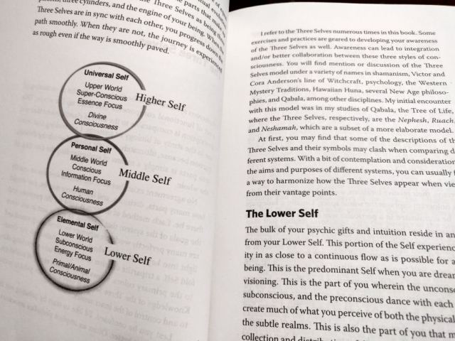 Psychic ability itself is subdivided into clairs and noirs. Clairs are the psychic senses attuned to the light, or to clear perception; noirs, a term Dominguez as coined, refer to automatic writing, pendulum divination, and the psychic work associated with the Lower Self. Psychic ability is then exercised through three vehicles: divination, prophecy, and oracular vision, which Dominguez devotes time to explaining each in turn. All three vehicles– divination, prophecy, and oracular vision– require the engagement of your three Selves.