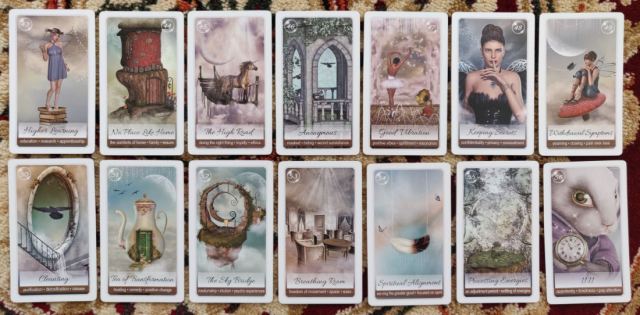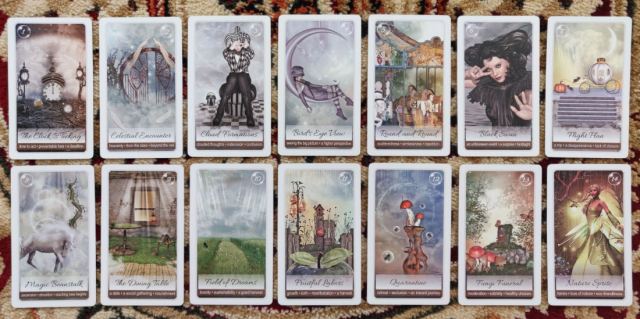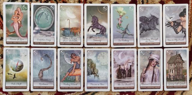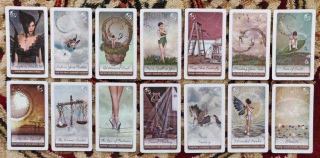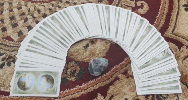 Then I assembled them back together, followed an invocation prayer given in the guidebook, and then fanned out the cards. I closed my eyes and with my palm gliding across the fan, pulled a card at random.
