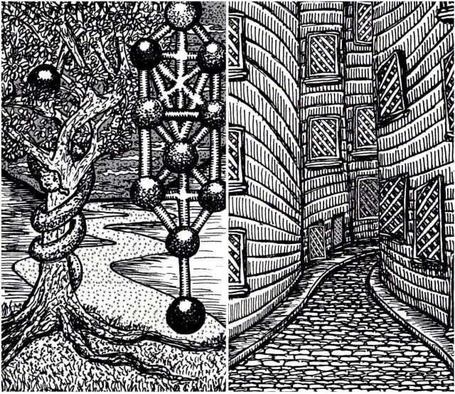 The above two doodles are scans of two pen and ink drawings I did over the holiday season. The one on the left is titled Garden of Eden, which you can see in the redesigned Key 6.
