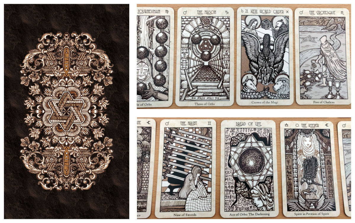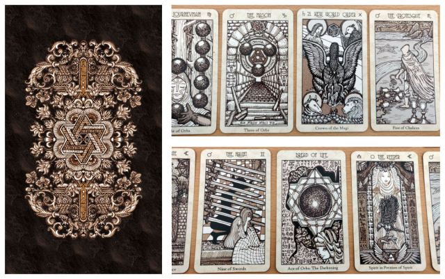 Spirit Keeper’s Tarot is a hand-illustrated 78-card tarot deck (with 2 additional versions of Key 0, for a total of 80 cards) inspired by late Renaissance woodcut prints, with symbology based predominantly on medieval European alchemy, Hermeticism, Zoroastrianism, astrology, the Kabbalah, Abrahamic angelology, Egyptian mythology, Sufism, and late Renaissance Christian mysticism.