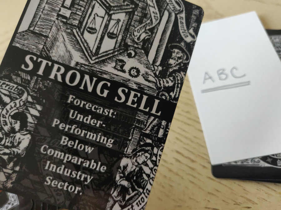 The idea for creating this deck came about at a dinner table when the Hubby and several of our friends, who are also either financial analysts or avid investors in the stock market, were talking about the volatility of the market (I say that like I have any idea what that even means…) and how at this point, a monkey with a dartboard can do better at making investment decisions than the veteran analysts.