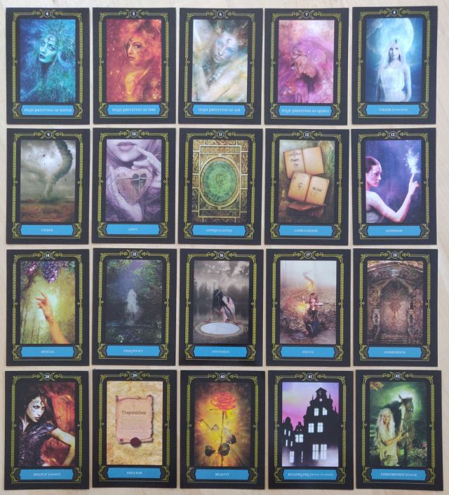 You can click on any of these photos for an enlarged view of the cards. The artwork fits in line with the branding of the YA novel series, so can’t complain much at all. It’s perfect for its function. I’m not personally a big fan of the pretty-goth aesthetic, not to be confused with goth style. I love goth style. It’s when it gets watered down into this saccharine sweet faux-goth that can kinda elicit the church giggles out of me. But I digress.