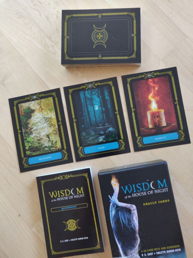 This is not a full deck review, just a look-see. Wisdom of the House of Night oracle cards were published back in 2012 and this deck has been in my collection for years and years, but I never picked it up to give it a go until now.