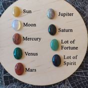 After reading through the guidebook, I was inspired to use the kit in other ways. For instance, after a tarot reading for a client, toss the stones onto the board to read the energetic profile of the client and get a sense of how to restore balance to the client. Integrate planetary lithomancy with an astrological personal transits reading.
